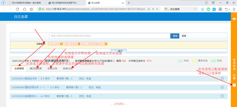 2.4根据培养方案要求,选课对学生有一定针对性,请各位学生对应自己的专业人才培养方案要求选择相关的课程。
