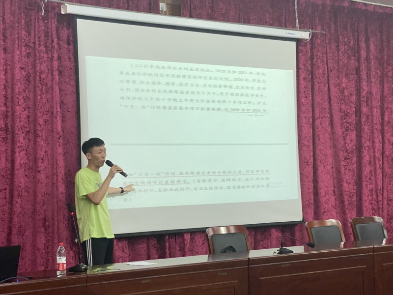 为了进一步引导和鼓励毕业生到基层奉献青春,增长才干,就业创业,6月11日下午,工学院结合党史学习教育开展“我为学生讲政策”实践活动在学生活动中心报告厅举办浙江省“两项计划”政策宣讲会,邀请了现服务于松阳团县委的2020届毕业生张志彬作为主讲人。