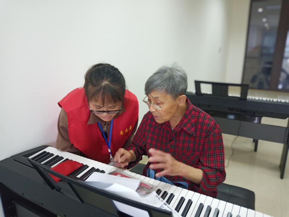在怡福家园唯康养老服务发展中心,同学们和老人们一起学习钢琴、做保健操,并且帮助行动不便的老年人完成用餐。还协助工作人员完成档案信息录入、楼宇通知单及菜单更换等工作。闲暇之余,他们还与老党员们畅谈,了解他们的入党、爱党故事,感受老人们的初心与使命。