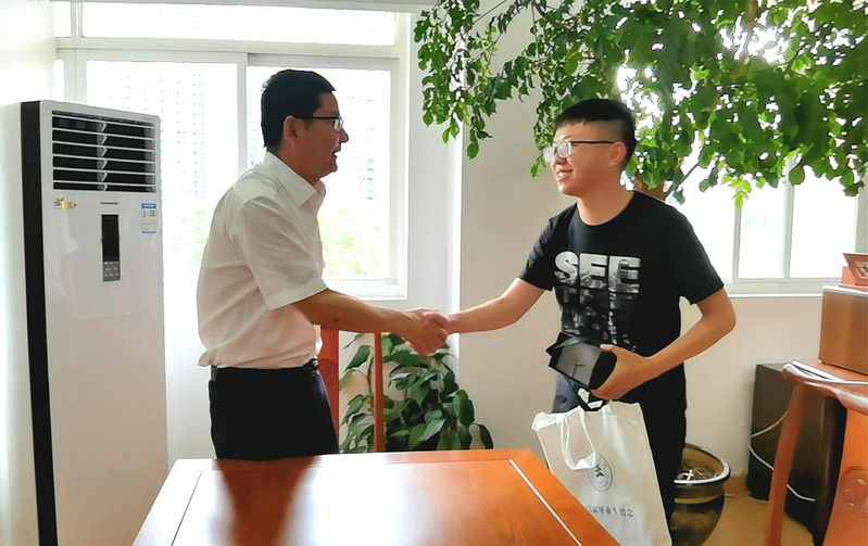 除了送给杨明建特别的毕业礼物之外,校长还与他促膝长谈,在得知他已经考上杭州市的教师编制时,校长十分欣慰,连连夸赞,并勉励他继续奋斗,希望今后他能做一个有德行的人,做一名关爱学生的教师,做一名“丽水之赞”的传播者。杨明建坚定的回答校长,必将不负学校的期望,努力成为丽水学院的骄傲,也希望丽水学院越办越好,蒸蒸日上。