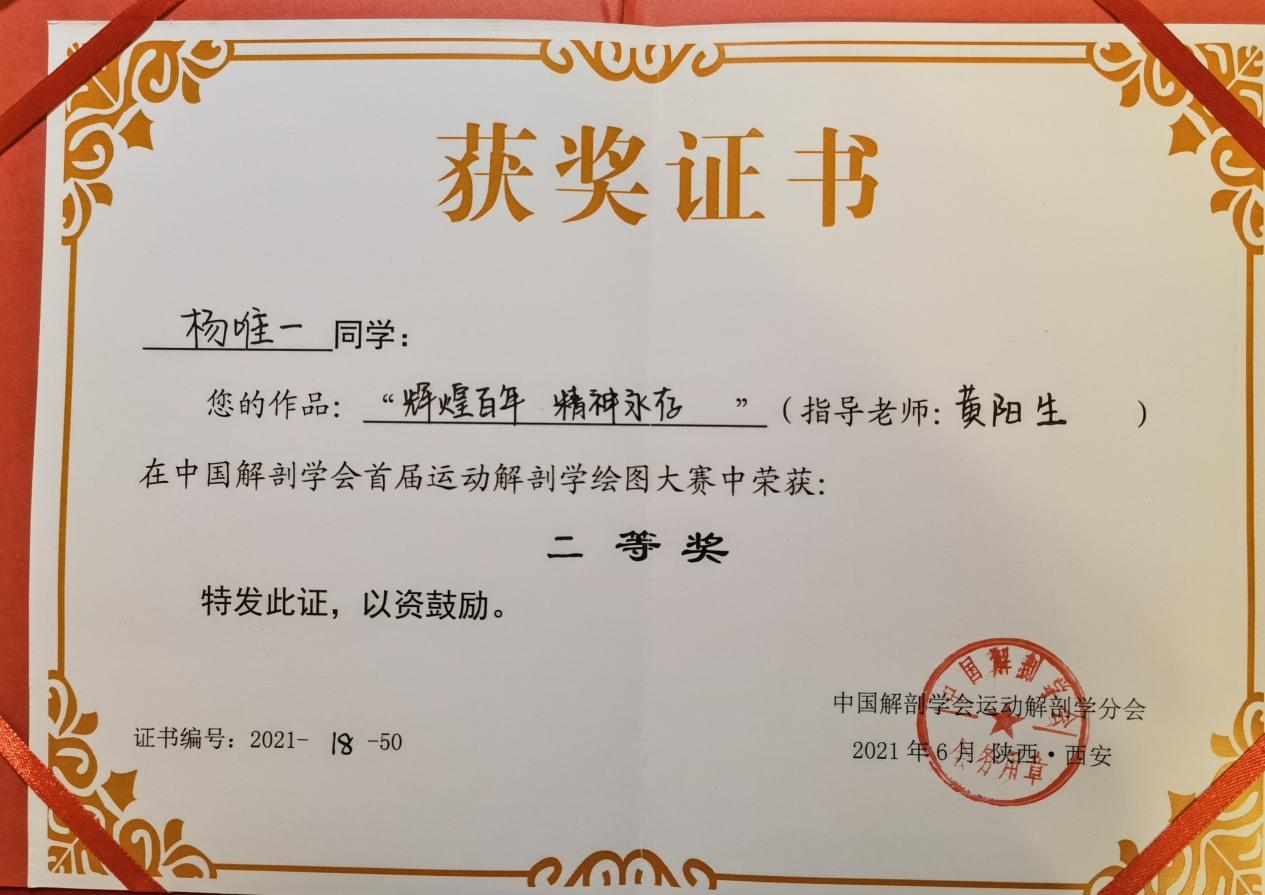 6月19日,中国解剖学会首届运动解剖学绘图大赛在西安圆满闭幕。我校职业技术学院护理191班杨唯一获二等奖。