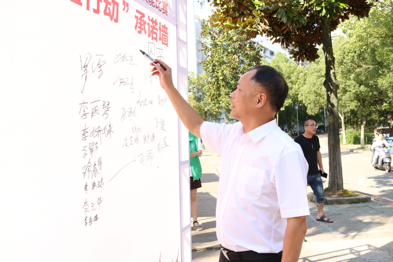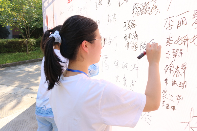 最后,嘉宾同现场师生在“光盘行动”承诺签名墙上签名,共同抵制餐饮浪费,自觉做到节约粮食。