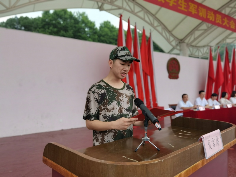 军训学员代表、民族学院学生詹晟作表态发言:服从命令,听从指挥;苦练功夫,磨练意志;迎接挑战,直面未来。