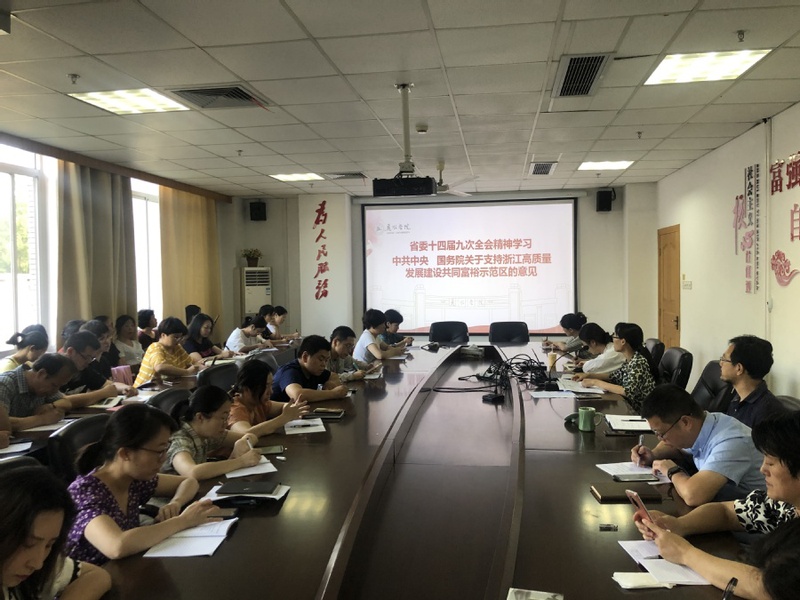 6月25日上午,图信中心组织全体党员、全体教职工学习省委十四届九次全会精神。学习会号召,每位党员和教职工要学习好、宣传好省委十四届九次全会精神,领会全会主旨,增强建设共同富裕示范区的自豪感和使命感,在享受发展成果的同时立足岗位,多作贡献。