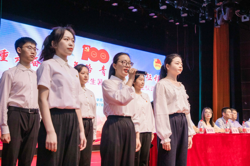 马克思主义学院周之新作为教师代表发言,他阐释了深入群众、了解社会的现实意义,提出了社会实践团队应要俯身潜行、扎根底层、不惧困难、联动配合。7名青年党员和社会实践专项团队代表在仪式上致辞,铿锵有力的话语坚定地发出:青年大学生用实际行动贡献力量、绽放青春、向党报告的实践誓言。