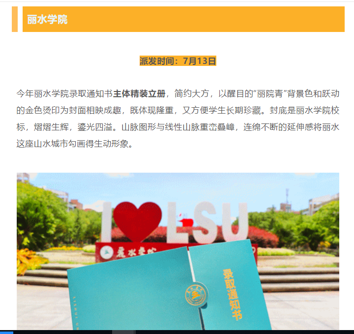 7月15日,浙江省教育厅官方微信教育之江刊发了我校今年启用的录取通知书正在派发的消息。
