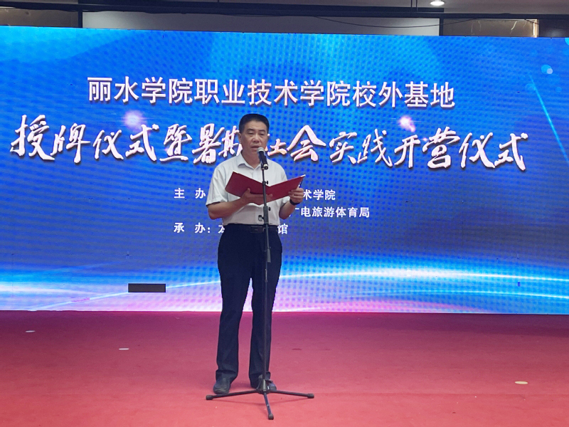 日前,我校职业技术学院校外基地授牌仪式暨暑期社会实践开营仪式在龙泉市文化馆举行,副校长蒋黎红出席。