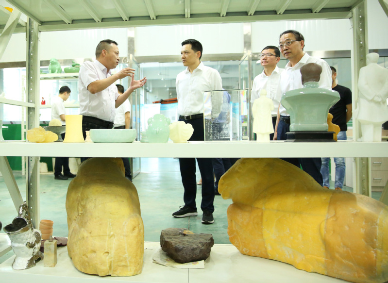 戴平辉一行先后考察了浙江省中药产业技术创新服务平台、省特色文创产品数字化设计与智能制造重点实验室和校虚拟现实与人机交互研究中心,详细了解学校发挥平台优势,借助数字技术,服务地方的工作情况。