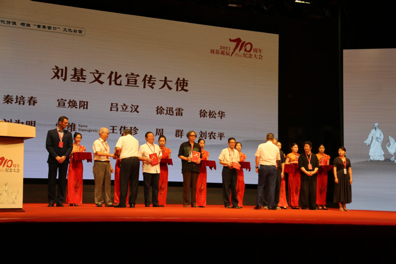 会上,吕立汉教授受聘为刘基文化宣传大使,并作了题为《论刘基的人才观》主旨报告。