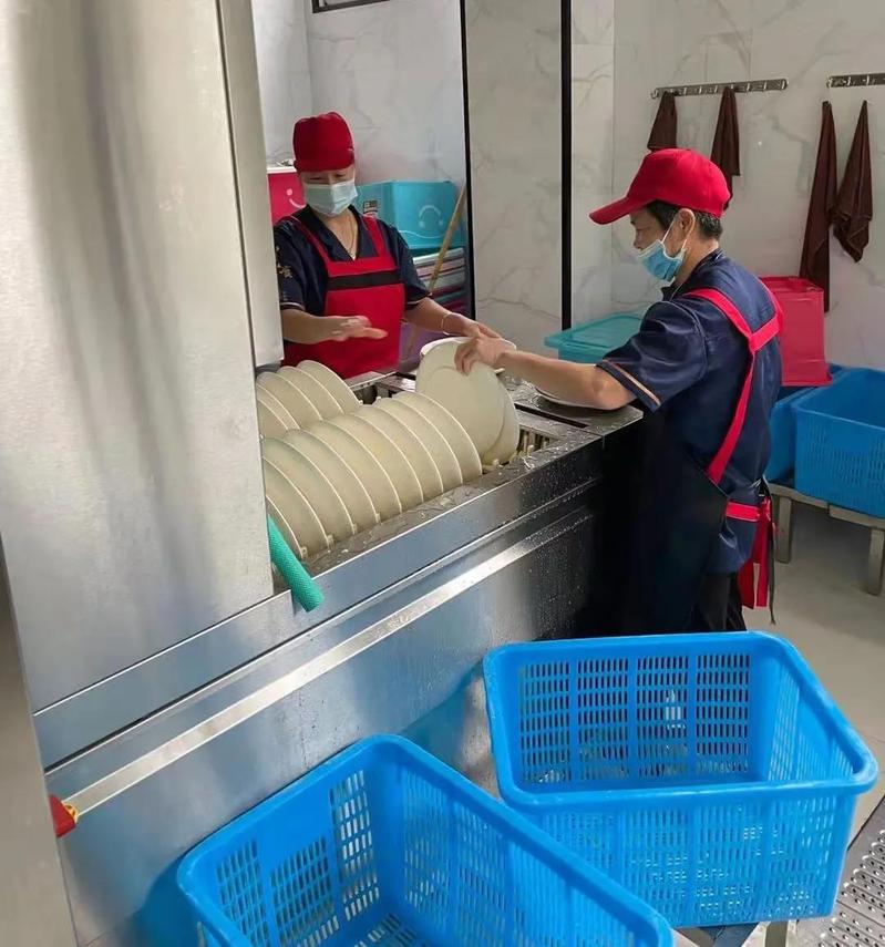 凌晨四点,食堂后厨间已热闹非凡,清洗声、切菜声、剁料声、油炸声响成一片,厨师们一天的工作也伴随着欢快的“锅碗瓢盆交响乐”拉开序幕;炎炎夏日,操作间如同桑拿房,炒锅娴熟地在炉火上翻腾,厨师们汗如雨下,工作服无数次被汗水浸透,眼睛一次次被汗珠迷糊;打菜员工戴着口罩,大汗淋漓,却仍元气满满地为就餐人员提供最贴心的服务;闷热的洗碗间,员工们专注地清洗、消毒着餐具,滴落的水珠,早已分不清是汗水还是溅落的自来水;饭点后,员工们一丝不苟地清扫着餐厅,晶莹的汗珠是对敬业最好的诠释。