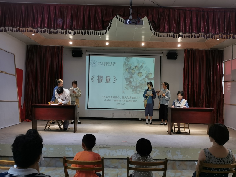 今年暑假,我校职业技术学院“百年党史润童心,星火传承筑未来”小候鸟儿童剧社下乡表演暑期社会实践团队先后来到丽水市庆元县、龙泉市两地,面向留守儿童开展党史学习教育实践与调研。