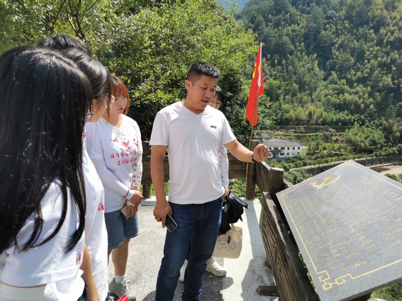 为更好的发掘本地区的红色资源,充实党史学习教育素材,同学们在实践地追寻红色印迹,近距离感受身边的党史。同学们前往濛淤红色纪念公园,并通过庆元县濛洲街道姚家村村支书姚德标的解说,了解了这里发生过的红军战斗故事。返程路上,村支书手指街边的一排排商铺,激动地与同学们分享浙西南这片红色热土上的乡村振兴:“这些店铺都是我们村的集体资产,收益由全体村民共享,光靠这项收入,都能保障村民的基本生活了”。