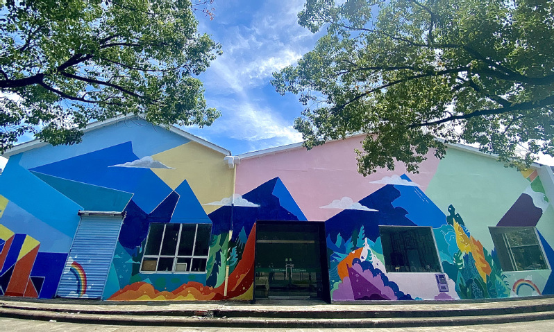 在“毕业感恩季”,环境设计专业毕业生与在校生联手设计,为创业基地“穿上新装”,一堵创意涂鸦文化墙成为2021级新生心目中的“网红打卡地”。