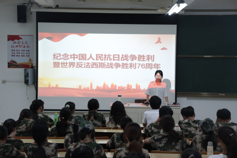 9月3日是中国人民抗日战争胜利暨世界反法西斯战争胜利76周年纪念日,为了铭记抗战历史,传承爱国精神,凝聚奋进力量,商学院在4202教室开展纪念中国人民抗日战争胜利76周年大会,进行新生爱国主义教育。