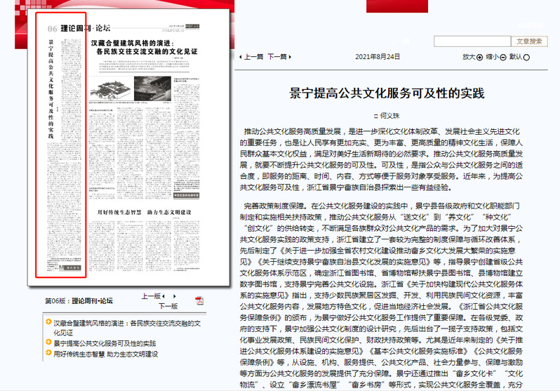 8月24日,中国民族报刊发了我校何义珠老师关于景宁提高公共文化服务研究相关理论文章。
