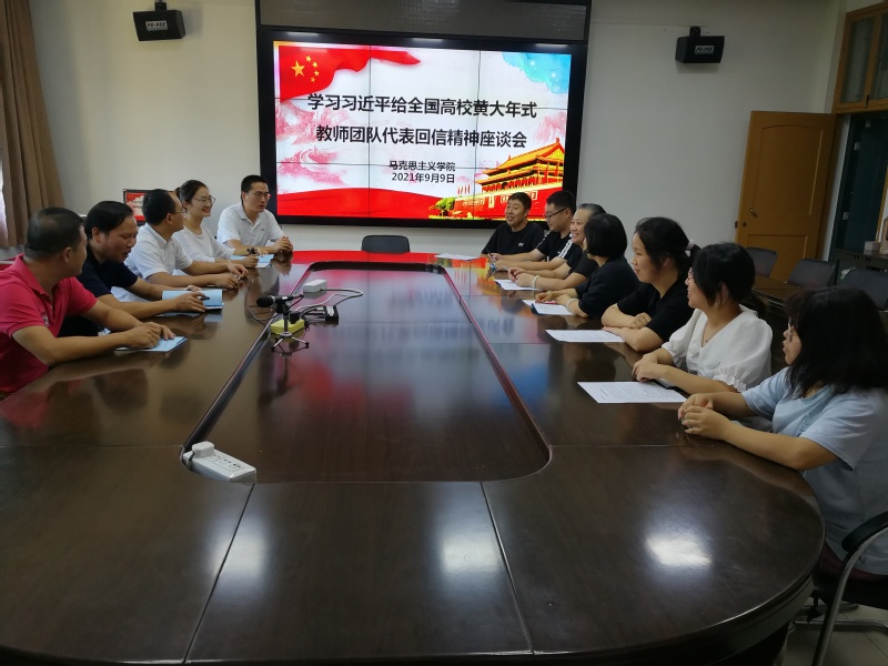 9月9日下午,在第37个教师节来临之际,马克思主义学院在靖逸楼313室召开座谈会学习贯彻习近平总书记给全国高校黄大年式教师团队代表回信精神。学院领导班子、教师代表、学生干部代表参加会议。