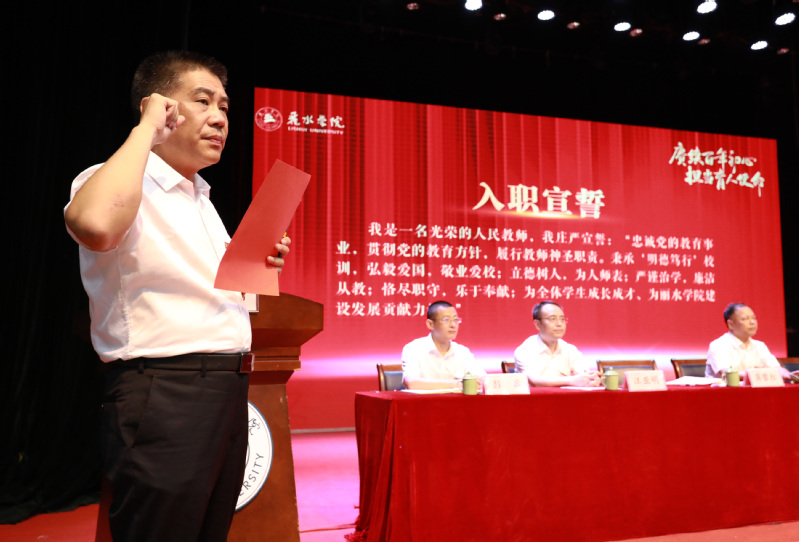 在副校长蒋黎红的带领下,新入职教师进行了集体宣誓。