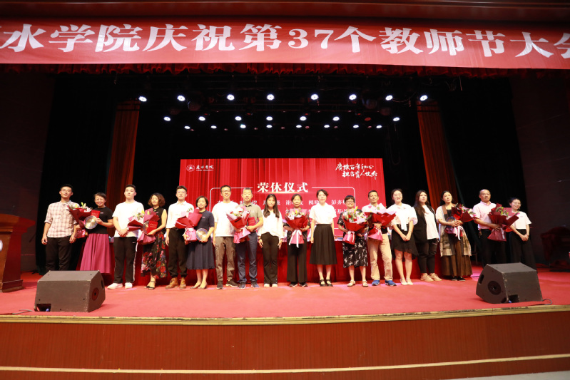 在“爱在丽院”环节,校领导为“我最喜爱的教师”获奖者颁发证书;学生代表向获奖老师献花;新教师代表来自工学院的谷远虎博士发言;学生代表来自教师教育学院的杨九余同学发言。