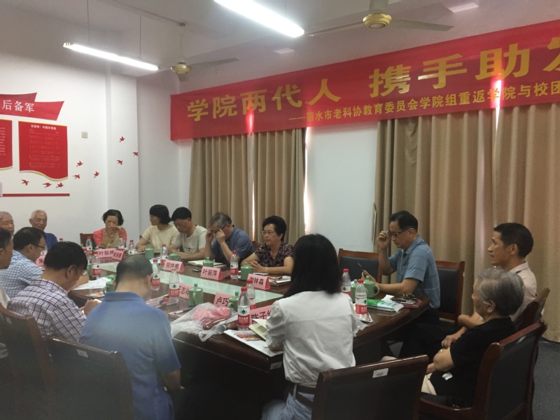 学院两代人,携手助发展。9月14日下午,丽水市老科协教育委员会学院组一行17人重返校园,在学生事务中心9424与我校团学干部开展了长达2小时的交流活动。人群中不乏熟悉的面孔——原丽水学院纪委书记叶丽萍、原丽水师专党委书记郑伟鹏、原丽水学院副校长谢林森以及市教育局原机关党委书记麻鑫汉、原丽水学院艺术学院院长杨建伟等,两代学院人共聚一堂,其乐融融。