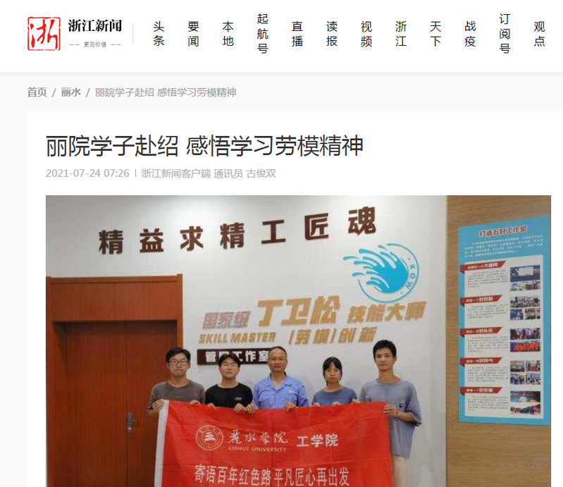 7月24日,浙江新闻刊发了我校工学院“寄语百年红色路 平凡匠心再出发”全国劳模访谈录暑期社会实践团队前往绍兴学习劳模精神的消息。