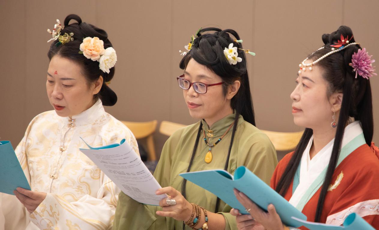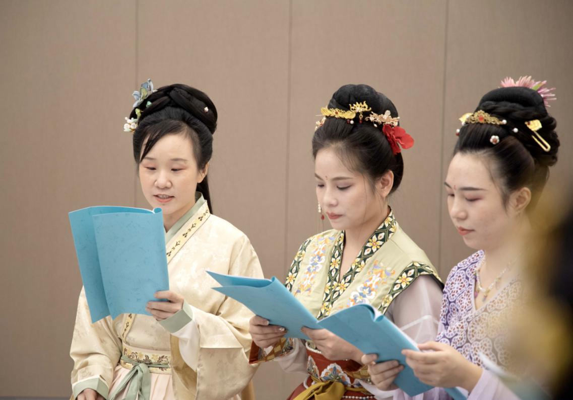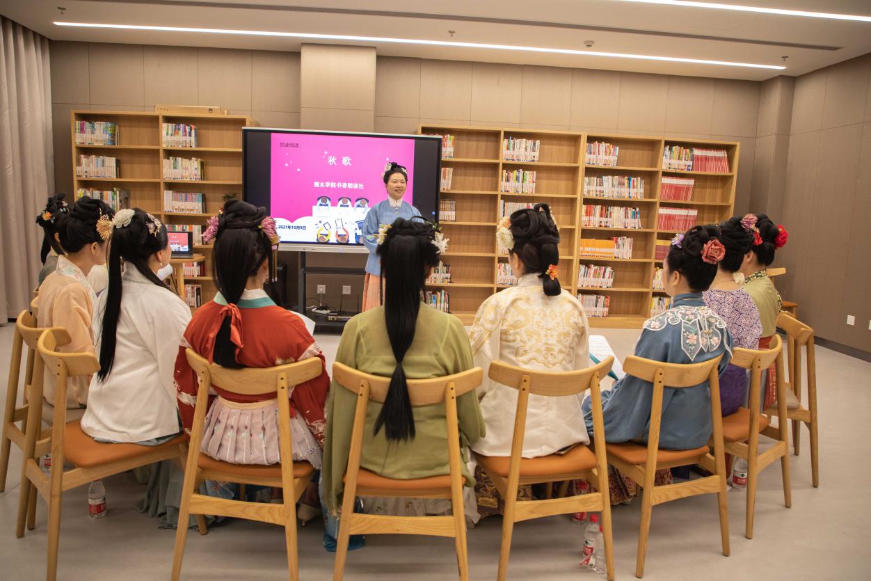 寒露、国风、秋歌,书香、雅言、声韵。10月9日晚,丽水学院工会、妇联组织教职工在丽水市图书馆举办了一场别开生面的诵读活动。老师们身着汉服,穿行在书香四溢的场馆、行廊,用动听的嗓音深情诵读一首首“秋歌”。