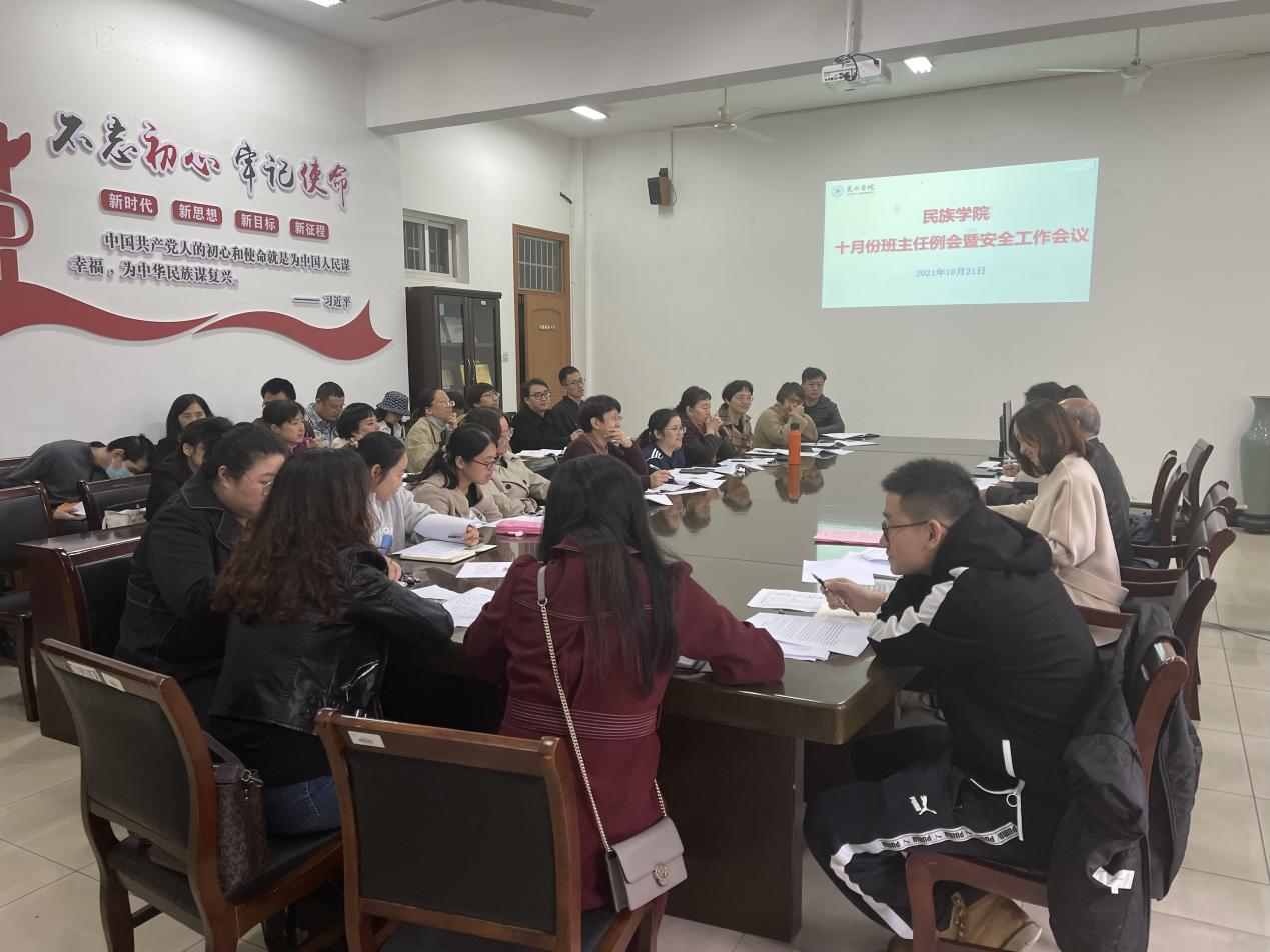 10月20日上午,我校召开2021年平安校园建设领导小组(扩大)会议,民族学院时刻牢记“平安校园”建设关系到每一位师生,必须做到守土有责、守土担责、守土尽责。20日下午,民族学院迅速召集各项工作分管领导、学系负责人以及辅导员传达学校平安校园建设会议精神,部署相关工作。
