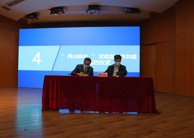 【14:37】“两山”转化实验区代表平乐县县长经友新、中国(丽水)两山学院执行院长刘克勤上台,共同签订“两山”转化实验区合作共建协议。