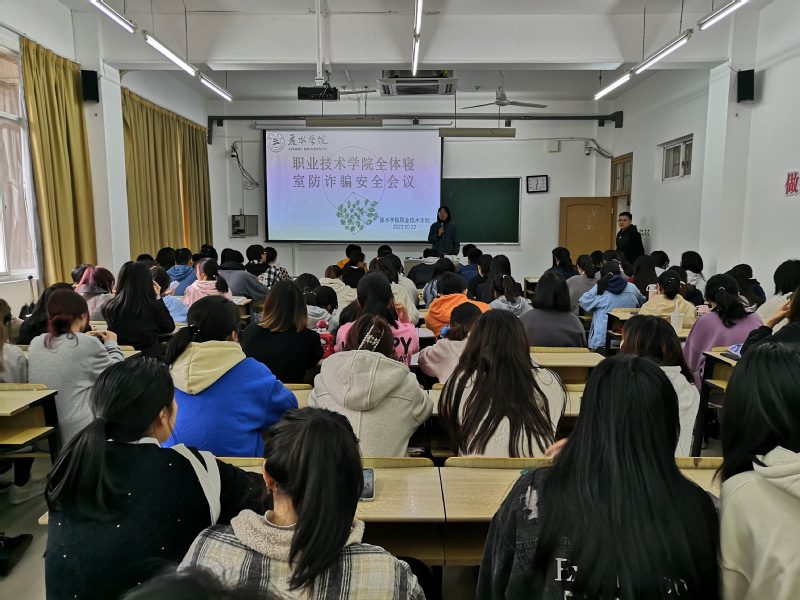 协同多方力量,完善工作格局。职业技术学院努力完善“党委牵头、多方联动、全员参与”的安全教育体系,安全教育向全方位化迈进的步伐加快。学院党委定期召开相关工作会议,部署安全教育工作,并将责任落实到人,定期组织办公楼、学生宿舍等区域的安全隐患自查、检查等工作;强化班主任安全教育职责,落实班主任定期组织学生开展班委例会、班级班会等制度,发挥班主任自身的影响力,开展展防电信诈骗安全考试,巩固学生安全知识;落实班级安全信息员制度,在每班设立安全委员,协助班主任及时发现并向学院上报安全隐患。