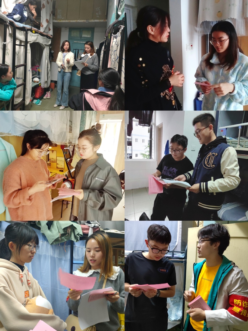 活动覆盖全体学生寝室,反诈骗宣传小组深入学生宿舍楼,点对点进行入户宣传。在走访现场,成员们分发防诈骗小贴士的同时,讲解了相关反诈骗的有效措施。同时,结合学生实际情况,分享了近期发生的电信诈骗典型案例,告诫广大同学要从思想上高度警惕,善于识别。大家纷纷表示,“天上不会掉馅饼,地上处处是陷阱”,将在日常生活中不断学习防诈骗的相关知识,加强自我防范意识。