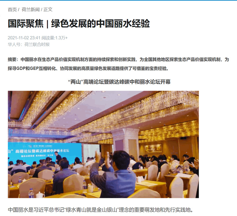 11月2日,荷兰联合时报报道了我校举办“两山”发展论坛暨长江经济带山区城市高质量发展智库联盟研讨会的消息。