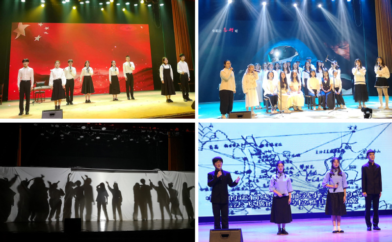 晚会节目是由党委宣传部下属各校园媒体组织自编自导的节目为主,广播台带来的朗诵《百年华章》,歌颂伟大中国共产党的领导;学通社带来的合唱《不要忘记我爱你》,表白校园媒体人的心声;新媒体带来的影子戏《小园掠影》,回顾校园记者成长记;电视台带来的现场秀,讴歌新青年的担当。