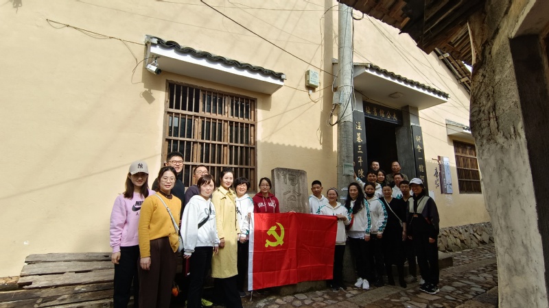 却金馆,栝苍古道穿村而过,是古道上一个重要的驿站(刘山铺),古时候,省城、京城和各地的士农工商从金华到丽水、温州两地,都要途经栝苍古道,在这里住宿和休息。抗日战争爆发后,为防止日本侵略军南侵,沿途群众迫不得已把民国时建成的丽缙公路破坏,只留括苍古道可以通行。在古道沿线曾留下过许多土地革命、三年游击战争的革命战争故事。在浙西南革命精神陈列馆,馆内“红色记忆”板块介绍了处州括苍古道上农民起义、工农红军挺进师转战、抗日救国、解放战争的概况,四面展板图文并茂地描述了那段可歌可泣的历史画卷。学院负责人以却金馆为题,对全体党员开展了廉洁教育,全体党员通过了解却金故事和对括苍古道革命故事的追溯,深受孝廉文化的浸染以及浙西南革命精神的洗礼。