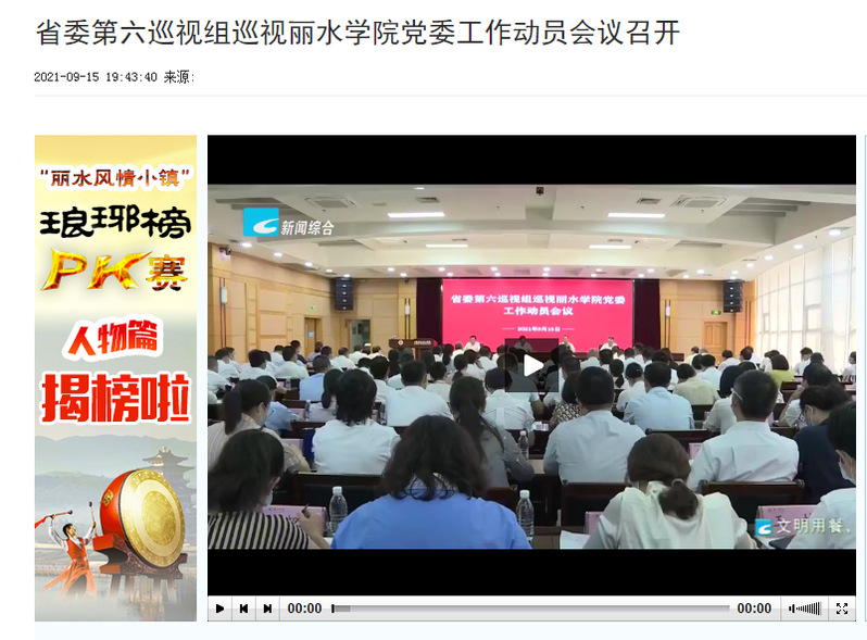 9月15日,丽水电视台新闻综合频道播出了我校召开省委第六巡视组巡视工作动员的消息。