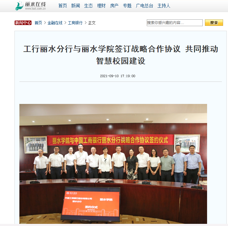 9月10日,丽水在线刊发了我校与工行丽水分行签订战略合作协议的消息。