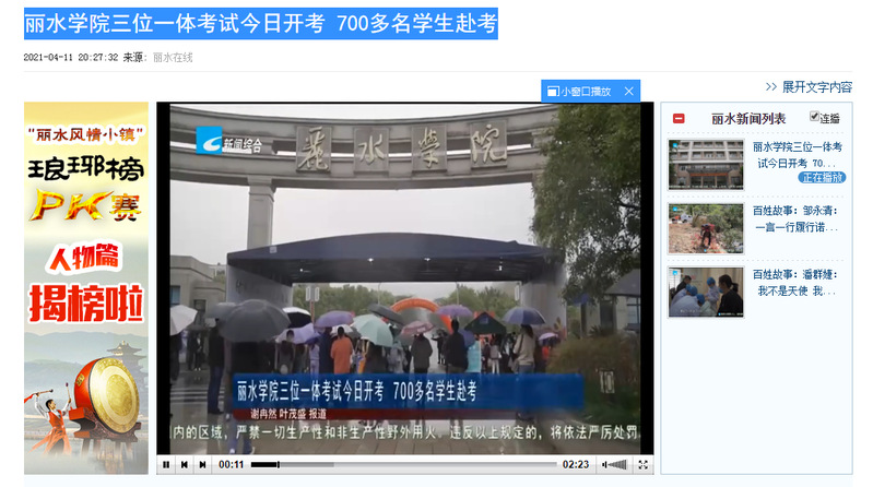 4月11日,丽水电视台播出了我校举行“三位一体”招生考试的消息。