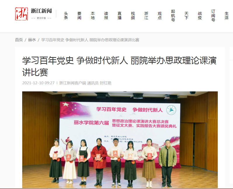 12月10日,浙江新闻客户端刊发了我校举办思政理论课演讲比赛的消息。