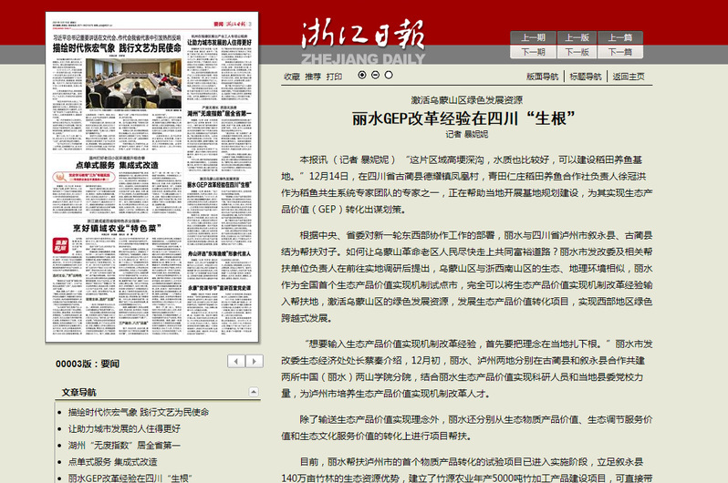 12月15日,浙江日报刊发了我校中国(丽水)两山研究院助力四川乌蒙山区发展的消息。