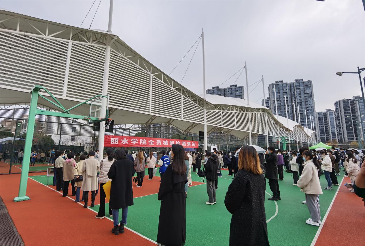 下午3:30,李俊杰作为总指挥,宣布丽水学院全员核酸检测实战演练开始。