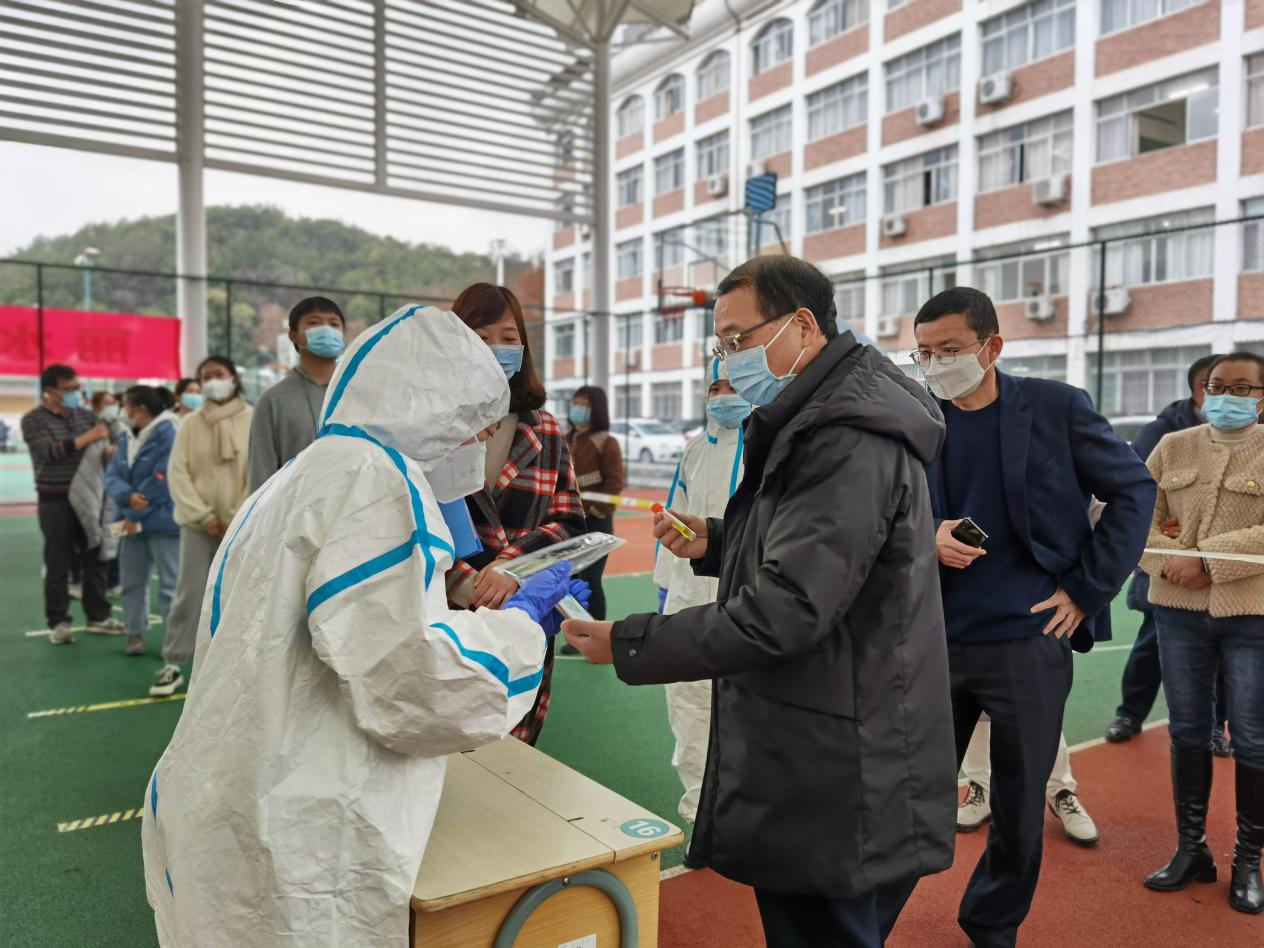 12月16日,我校新冠肺炎病毒全员核酸检测实战演练在西区风雨操场举行。校党委书记王利琳、校长李俊杰、校党委副书记叶华松、纪委书记鲁剑伟等参加了演练。