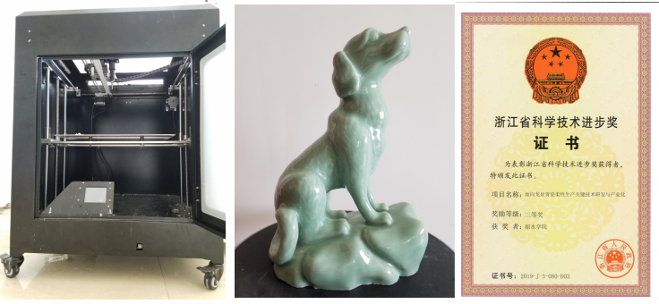 该成果围绕龙泉青瓷产业技术创新和转型发展的重大需求,通过3D打印装备及系统、龙泉青瓷3D打印新材料体系、数字化烧制技术等方面开展研究,实现了龙泉青瓷小批量、定制化、智能化、自动化、信息化、高效灵活柔性生产。最终形成从用户网络定制到设计研发、智能生产、多维销售的全产业链创新升级,打造全新的龙泉青瓷产品与文化,可实现龙泉青瓷小批量、定制化、智能化、自动化、信息化、高效灵活柔性生产,并应用于龙泉青瓷产品快速生产、快速制样领域,提高了龙泉青瓷产品制样周期及生产周期,具有良好的市场应用前景。成果曾获浙江省科技进步三等奖。