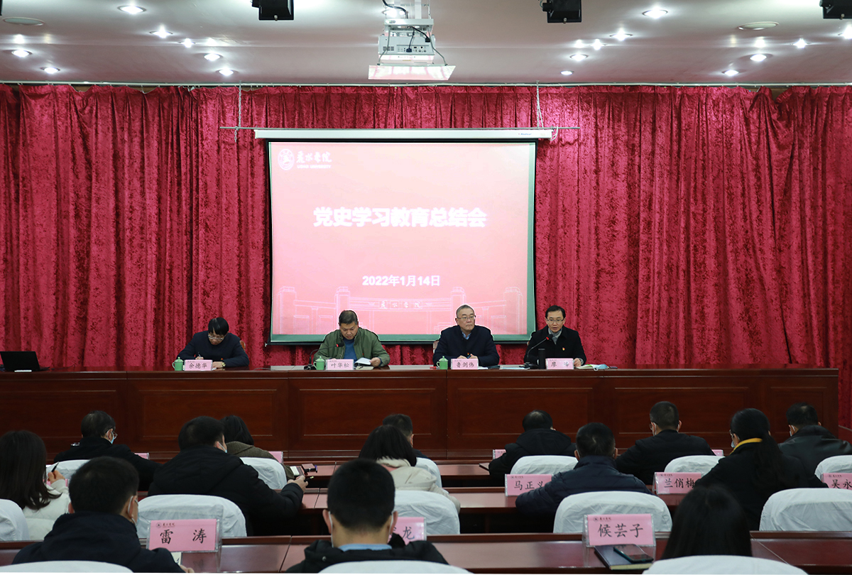 近日,我校召开党史学习教育总结会议,深入学习贯彻习近平总书记重要指示精神、中央党史学习教育总结会议精神、党的十九届六中全会精神等,全面回顾总结学校党史学习教育开展情况,全面总结、巩固、拓展学校党史学习教育成效,部署建立党史学习教育常态化、长效化机制。校党委副书记叶华松作总结讲话,校纪委书记鲁剑伟,校党委委员、组织部部长余德华出席会议,校党委委员、宣传部部长廖峰主持会议。