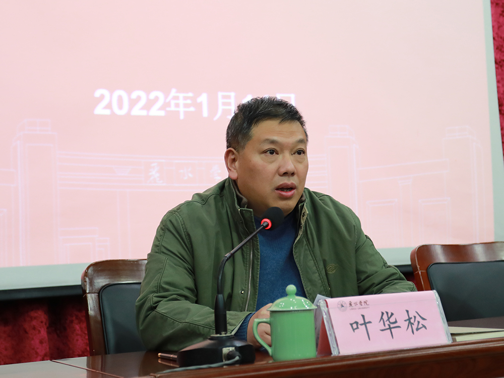 叶华松强调,党史学习教育永远在路上,要继续深入研读和领会党的十九届六中全会决议,学习习近平总书记在省部级主要领导干部学习贯彻党的十九届六中全会精神专题研讨班开班式上的重要讲话精神,继续把党史总结、学习、教育、宣传引向深入。一是要着力强化理论思维和思想引领,不断加强理论学习,提高理论思维水平,增强理论联系实际的工作能力;二是要着力坚持唯物史观和正确党史观,更好地认识和把握党的百年奋斗重大成就和历史经验,从而更加坚定、更加自觉地践行初心使命;三是要着力创新常态化长效化制度机制,继续用好各类学习制度,挖掘好地方红色资源,开展好“三为”实践活动,不断巩固拓展党史学习教育成果。同时,围绕“三个着力”进一步强化责任落实、强化宣传总结、强化效果导向。把握和运用党的百年奋斗历史经验,弘扬伟大建党精神,增加历史自信、增进团结统一、增强斗争精神,动员全体师生坚定信心、勇毅前行,把思想和行动统一到习近平总书记系列讲话精神上来,统一到党中央决策部署上来,真抓实干,以实际行动迎接党的二十大胜利召开。