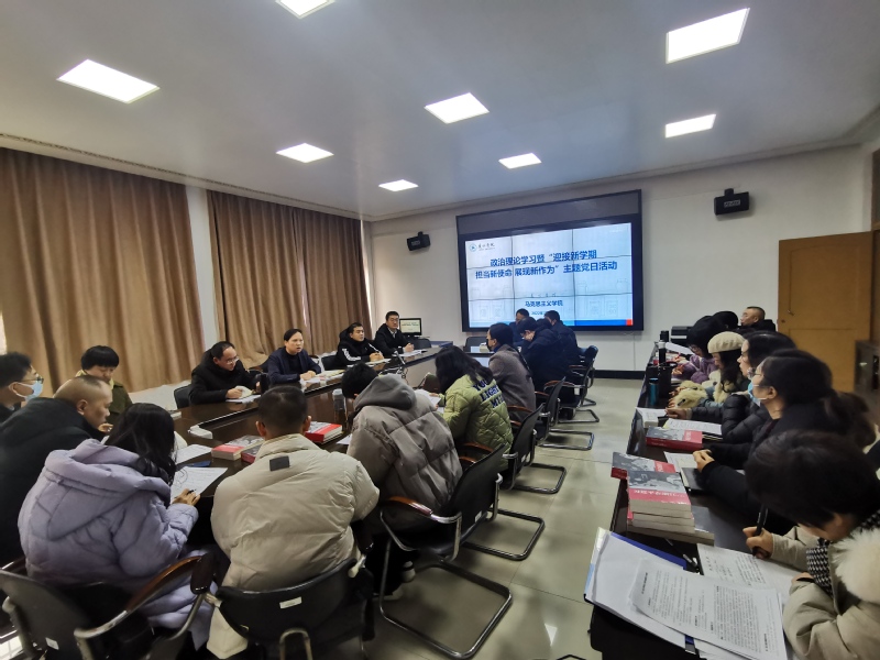 为激励全体教师满怀激情投入新学期工作,主动担当作为,2月20日,马克思主义学院直属党支部在靖逸楼三楼会议室开展“迎接新学期 担当新使命 展现新作为”主题党日活动。