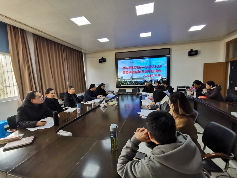 2月24日,在学校思想政治理论课教师座谈会三周年前夕,学校在靖逸楼三楼会议室召开思政课教师座谈会重温习近平总书记在学校思想政治理论课教师座谈会上的重要讲话精神。校党委副书记叶华松,校党委委员、宣传部部长廖峰出席会议。