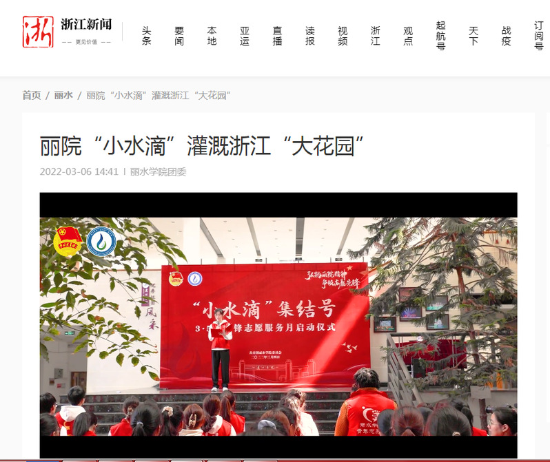 3月6日,浙江新闻客户端刊发了我校“小水滴”集结号3.5雷锋月活动启动仪式的消息。