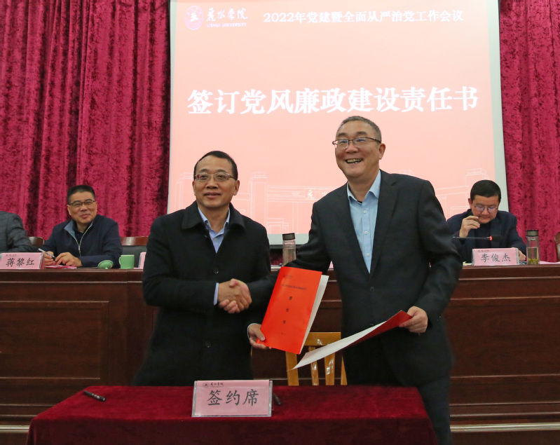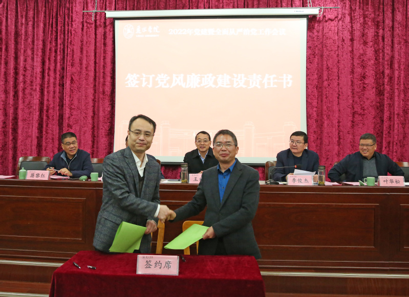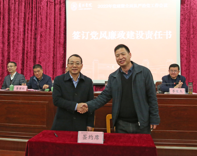 会上,王利琳与叶华松、民族学院党委负责人签订意识形态工作责任书,与鲁剑伟、生态学院党委负责人签订党风廉政建设责任书;叶华松与党委委员、宣传部长廖峰签订意识形态工作责任书;副校长汪亚明与科研处负责人签订党风廉政建设责任书。