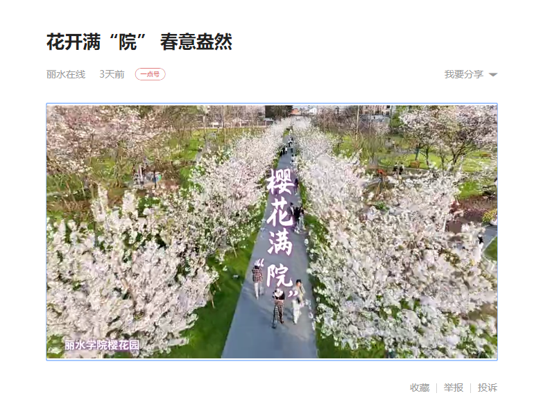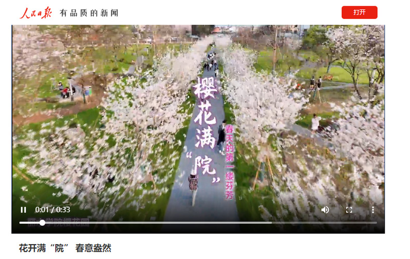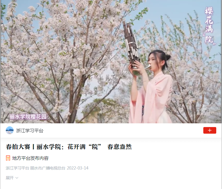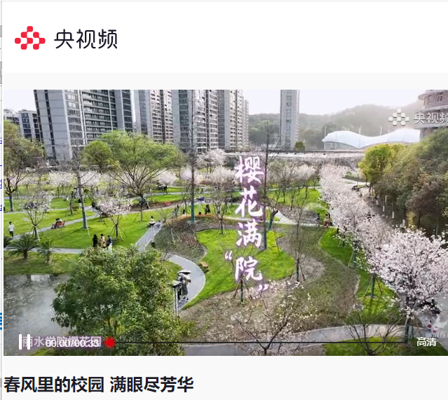 3月14日,学习强国浙江学习平台刊发了我校樱花园花开满“院”春意盎然的短视频内容。