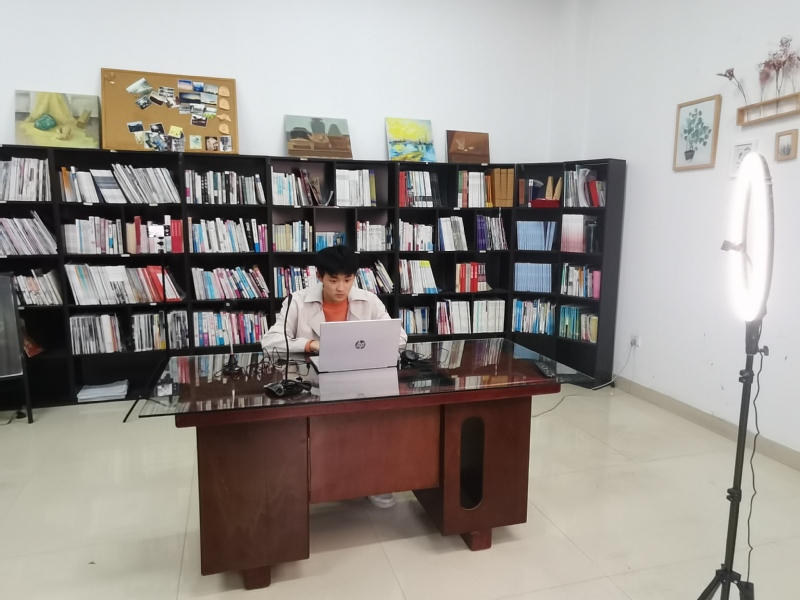 紧扣复试要求,提升硬件保障。线上复试最重要的是要有一个设备优良环境幽静的场所。为了给考研学生提供良好的复试场地,我校设立了“研究生复试专用室”,在室内重新安装宽带网络,在教室安置了高清摄像头、麦克风、三脚架、补光灯等全新设备,并在复试当天安排党员志愿者维持场外的秩序,确保复试过程万无一失。