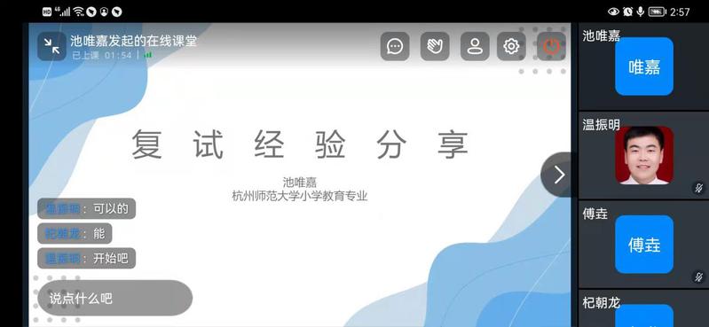 关注学生心理,增强复试信心。复试临近,考研学生承受着巨大的心理压力,教师教育学院、商学院组织参加复试的同学开展学长学姐线上答疑辅导活动。由我校考上相关院校的在读研究生分享复试和调剂心得,通过朋辈关心关怀,从研究生复试流程、仪容仪态、面试技巧、英文表述等方面为作全面的指导,加强辅导的针对性,提醒注意事项,切实增强同学们复试的信心。