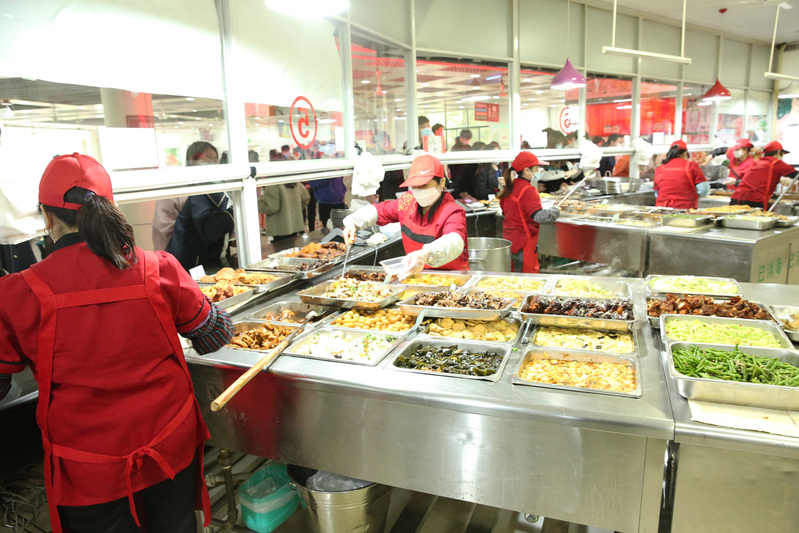 在食堂里,同学们有序用餐,校长李俊杰来到后厨检查,不时询问餐食供应情况:“今天的菜看着很丰富,最近原材料供应紧张吗?”“很充足,菜品也很齐全,请校长放心。”餐厅厨师长表示。“供餐时间可以再做些调整,晚上可以准备些夜宵,不能让有需求的师生饿肚子。”“好的,好的,我们一定办到……”